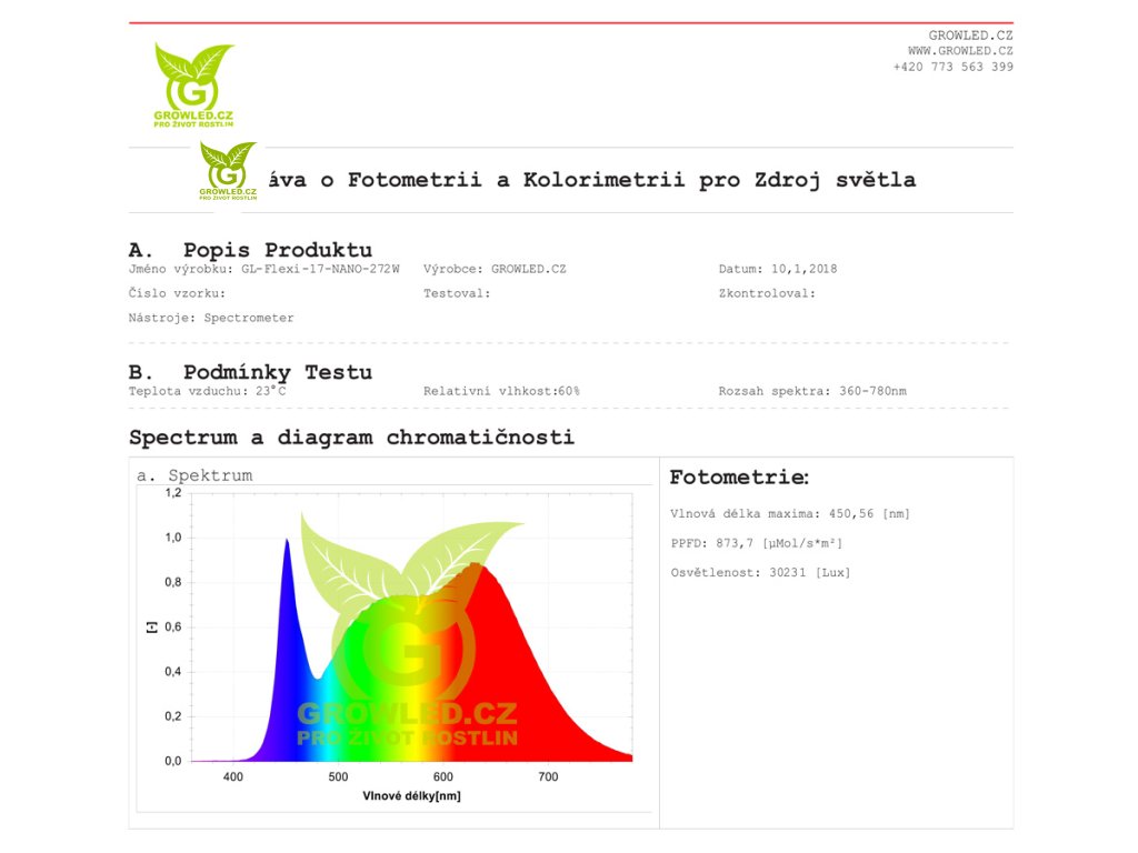 | Spektrum: | Plné spektrum (360-780 nm) |