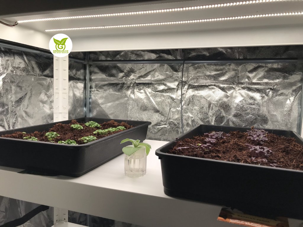 | PPFD (měřeno 3x0,7m @20cm): | Max: 185 μmol/m⁻² s⁻¹ (Průměr: 162,8 μmol) Vhodné pro sazenice, microgreens a bylinky. |